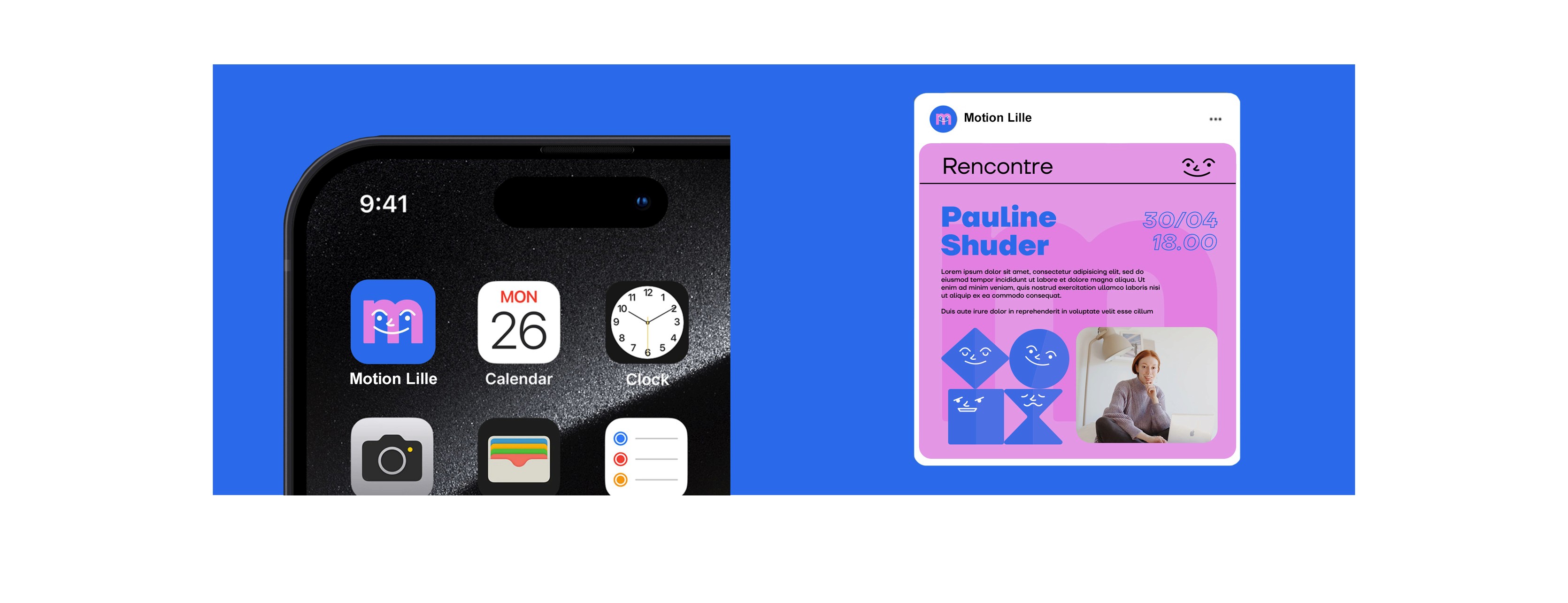 Visual identity for MotionLille, a meetup where enthusiasts and the curious can come together to discover and learn the motion design profession.